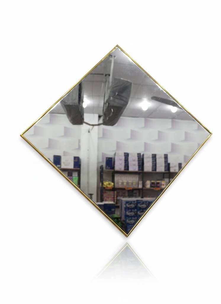 Instantly elevate your wall decor with this striking Diamond Shaped Mirror. The unique geometric design is framed by a thin, elegant gold metal edge, making it a perfect modern accent piece. Hang it diagonally to achieve the full diamond look, ideal for entryways, living rooms, or bedrooms.