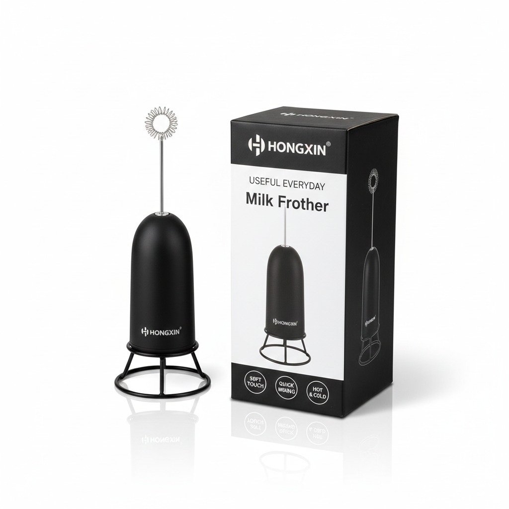 HONGXIN Electric Handheld Milk Frother – Quick Mixing Battery Operated Coffee Foamer with Stand