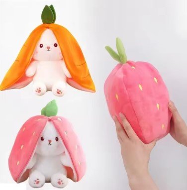 “Bring a touch of magic to your child’s toy collection with the Hide-and-Seek Rabbit Plush toy, now available at Virtual Bazaar. This isn’t just an ordinary stuffed animal; it’s a delightful 2-in-1 surprise! At first glance, it looks like a vibrant, oversized strawberry or a crunchy carrot, but once you unzip the ‘leaves,’ a charming white bunny with adorable paw prints and a sweet face is revealed.
