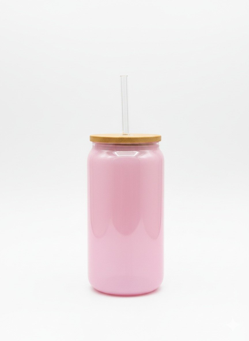 Enjoy your favorite iced coffee, tea, or soda in this trendy Pink Glass Can Tumbler. Featuring a sleek soda can shape, a sustainable bamboo lid, and a reusable glass straw. Perfect for aesthetic drinks on the go or at home.