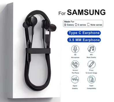 The Samsung Type-C Wired Earphones with Mic, features an advanced HD microphone that focuses on signal stability, reducing background interference during important conversations. The ergonomic in-ear design provides natural noise isolation, allowing you to immerse yourself in your favorite playlist. With the built-in remote, you have full control at your fingertips—switch songs or answer calls with a simple press. Get original-like performance and durability with these premium earphones from Virtual Bazaar Shop today!” virtual bazaar
