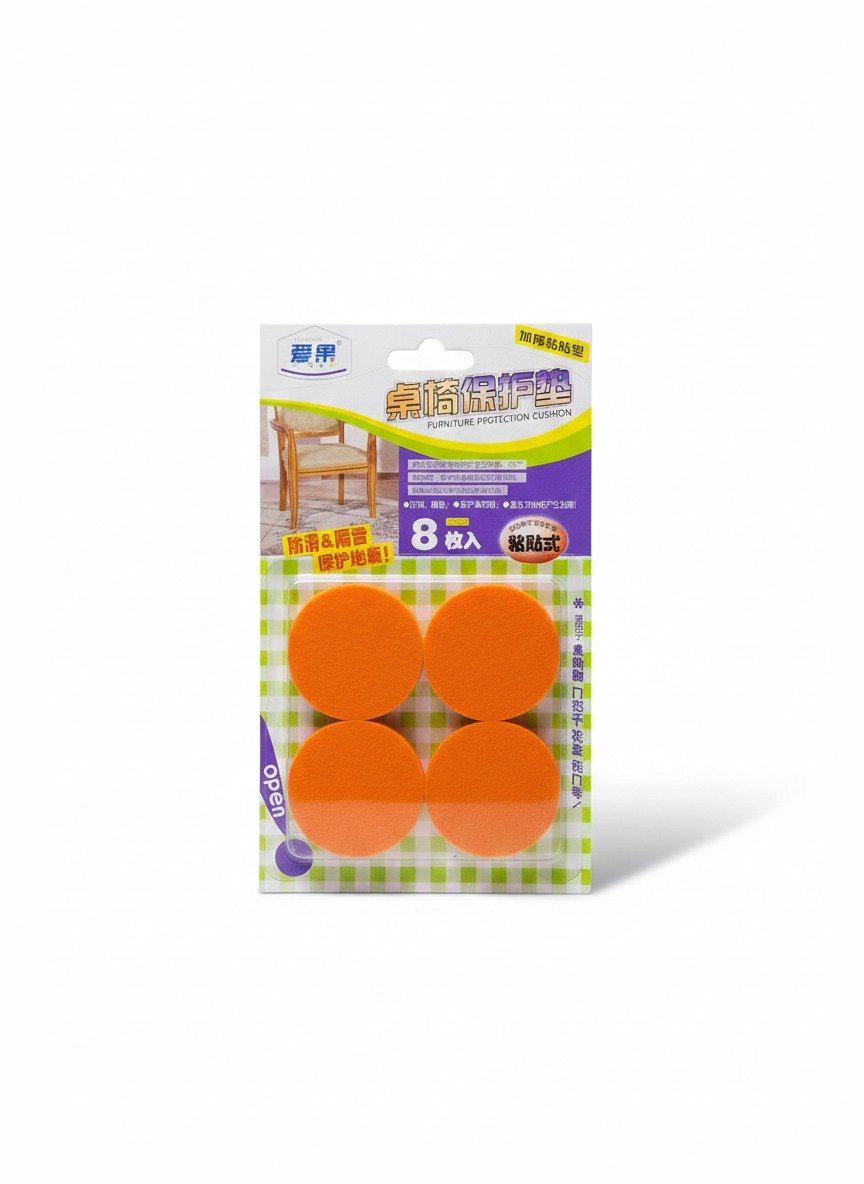 Protect your valuable hardwood, laminate, tile, or vinyl floors with this 8-piece pack of premium orange Self-Adhesive Chair Legs Pads. These circular furniture protection cushions are engineered to sit discreetly under chair legs, sofas, tables, and other heavy items, creating a soft, durable barrier between the furniture and the floor.