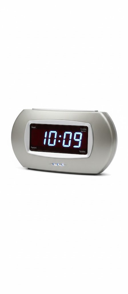 Start your day with the functional elegance of our Sleek Silver Digital Alarm Clock. Designed with a contemporary aesthetic, the clock features a smooth, rounded silver (or light grey/gunmetal) casing that seamlessly blends with any modern decor. The centerpiece is the large, highly visible blue LED display, which clearly shows the time in a format that’s easy to read from across the room, day or night. Functional features, suggested by the small text and indicator lights, include a convenient snooze function and the potential for adjustable display brightness. Its compact, horizontal design makes it an ideal, non-intrusive addition to your bedside table, desk, or kitchen counter.